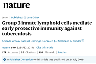 非洲健康研究所和华盛顿大学医学院的研究团队在Nature杂志发表题为“Group 3 innate lymphoid cells mediate early protective immunity against tuberculosis”的研究文章,为结核病的治疗和疫苗提供了一种新方法。